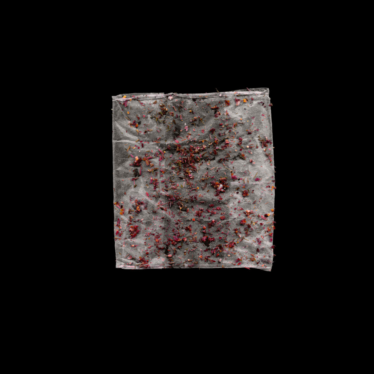Desde el 2003, diariamente me tomo un té, guardo las bolsas y muchos de los residuos que deja ese ritual. En cada elemento queda una huella del momento vivido, como una impresión o una especie de captura de la cotidianidad. Y de ahí nace esta serie chadō (ceremonia del té).