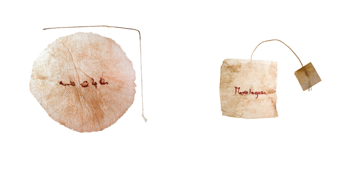 Estas dos bolsas de té son el fruto de largas conversaciones que mantuve durante dos años creando este vínculo. A la par de un centenar de sonrisas, de aromas, de los momentos vividos, fue evidente cómo entender no significaba comprender. Aquí hay dos apartados, de dos años de conversaciones, la primera es el momento donde los monólogos comenzaron, la otra cuando terminaron. Fueron encuentros repentinos para poder concluir que la frontera modificó el discurso lentamente, como a su vez el discurso maleó los limites.