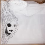 Esta parte del proyecto se materializo con 12 velos bordados en hilo negro, evocando el transcurrir del tiempo en un objeto que se usa sólo una vez y finalizada la ceremonia es guardado para recordar el evento.