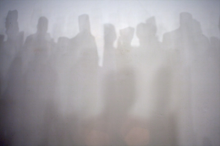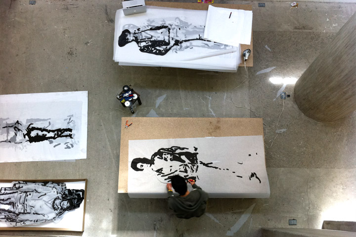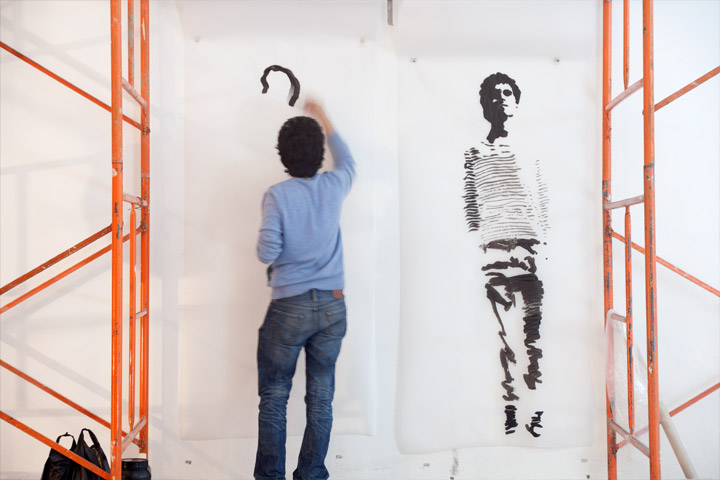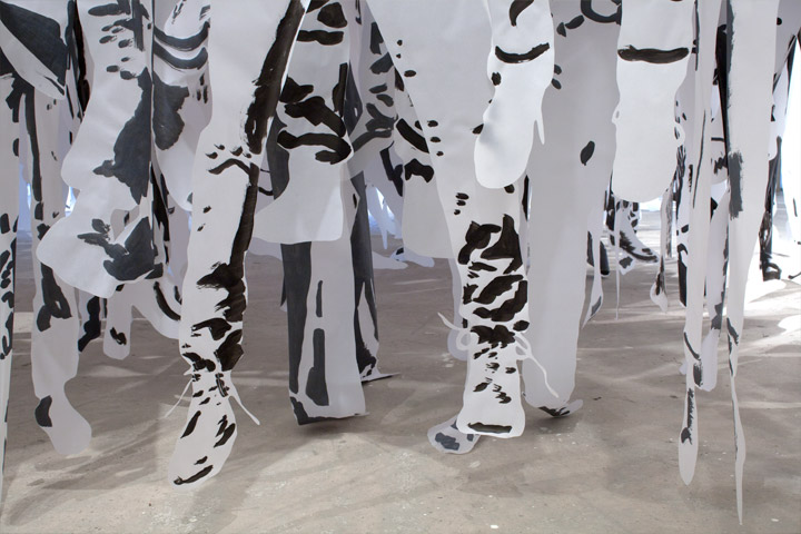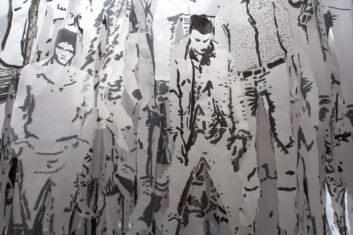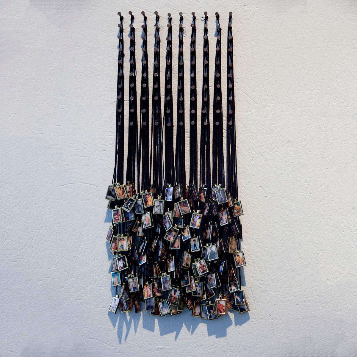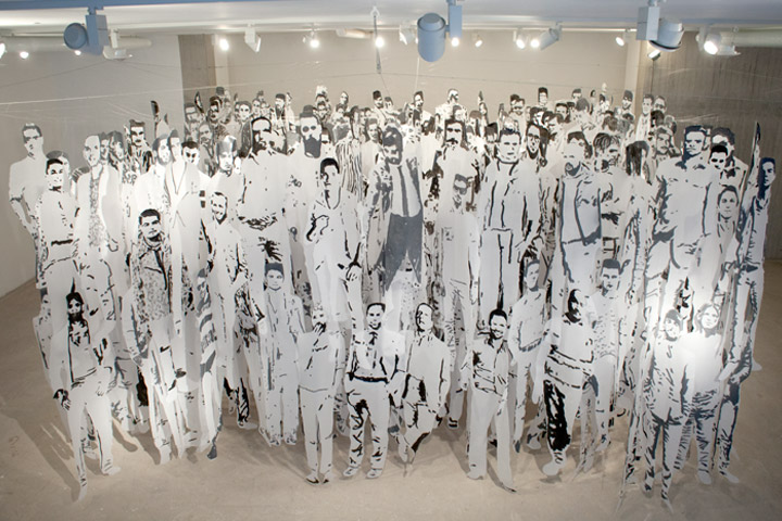 La instalación consta de 1000 hombres dibujados a mano y cortados para poder ser recorridos, estos están puestos en ganchos de carnada dispuestos en 4 círculos pasando del ser que conozco, al que venero, al que idolatro y al anónimo.