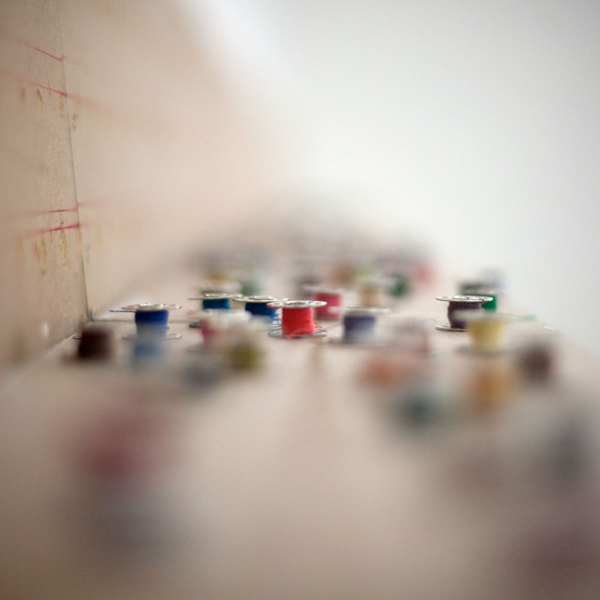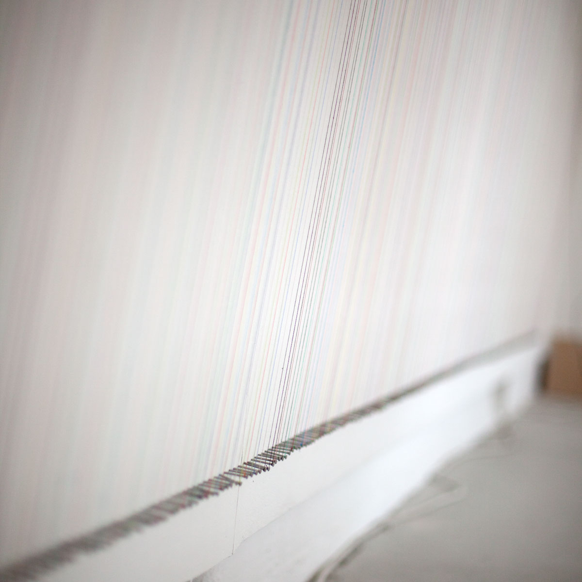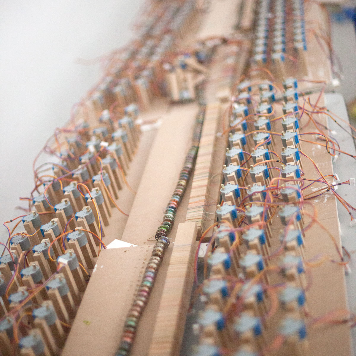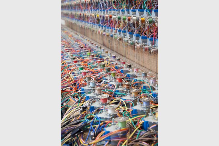 Ella consta de 365 motores que quitan de las paredes 365 puntillas unidas a 365 hilos de colores diferentes. Todos los materiales, con una excepción, son hechos en China.
