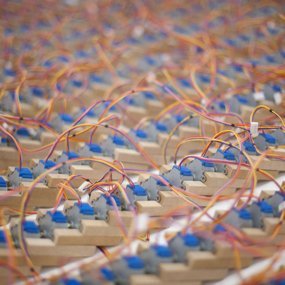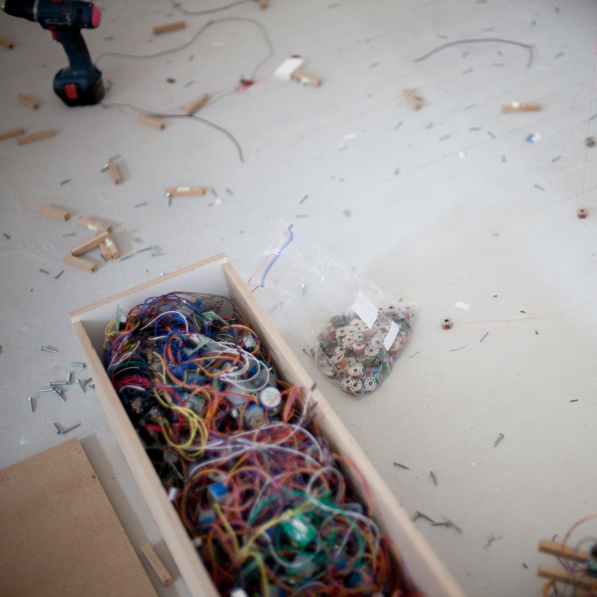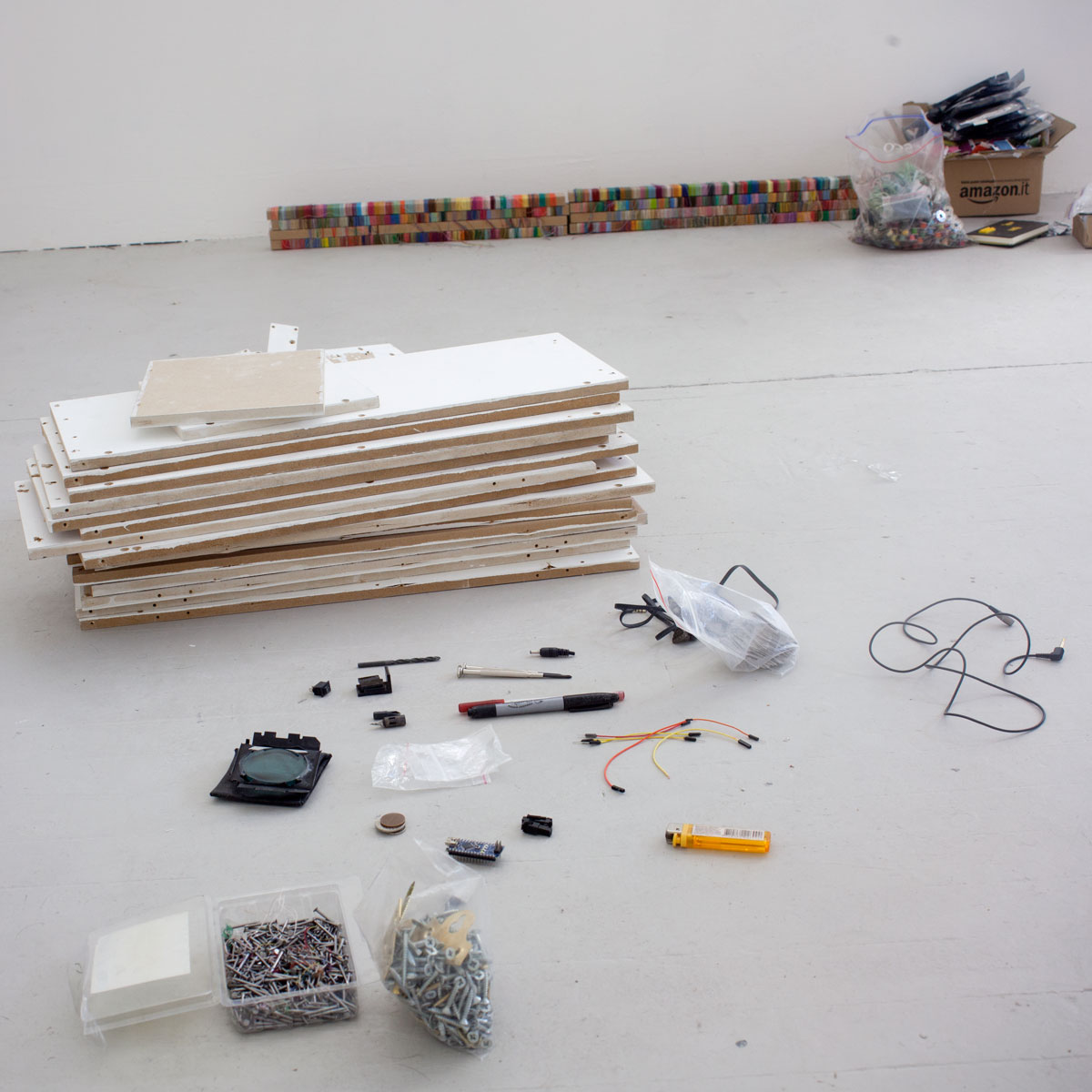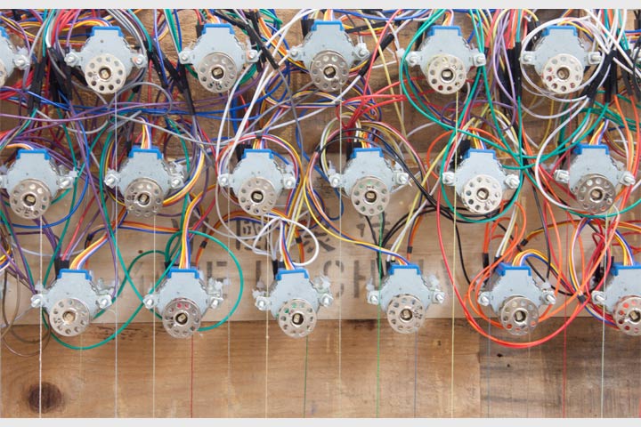El elemento foráneo es un microcontrolador italiano que le da pulsos a 28 controladores del mismo modelo que el italiano, pero hechos en China. Estos 28 microcontroladores les dan impulso en un orden aleatorio a uno de los 365 motores para que, gracias a un proceso de tensión, quiten una puntilla clavada en la pared.