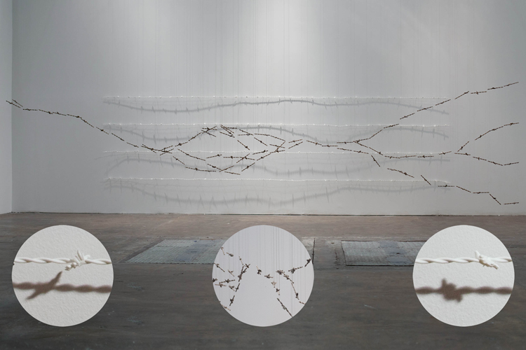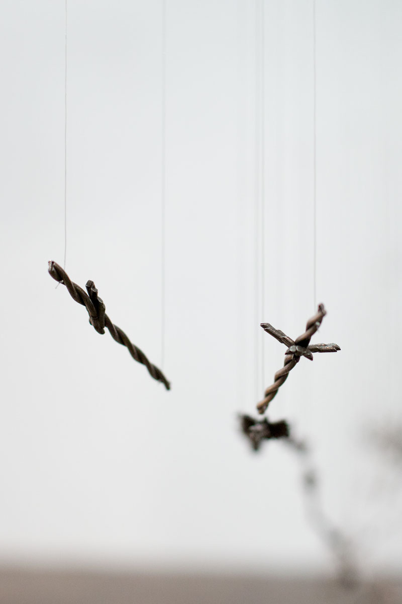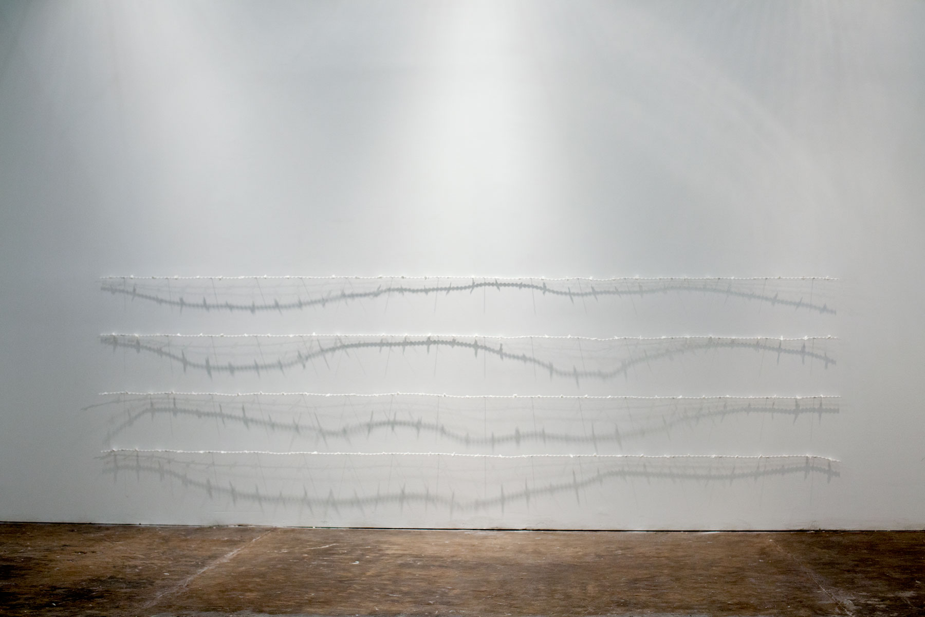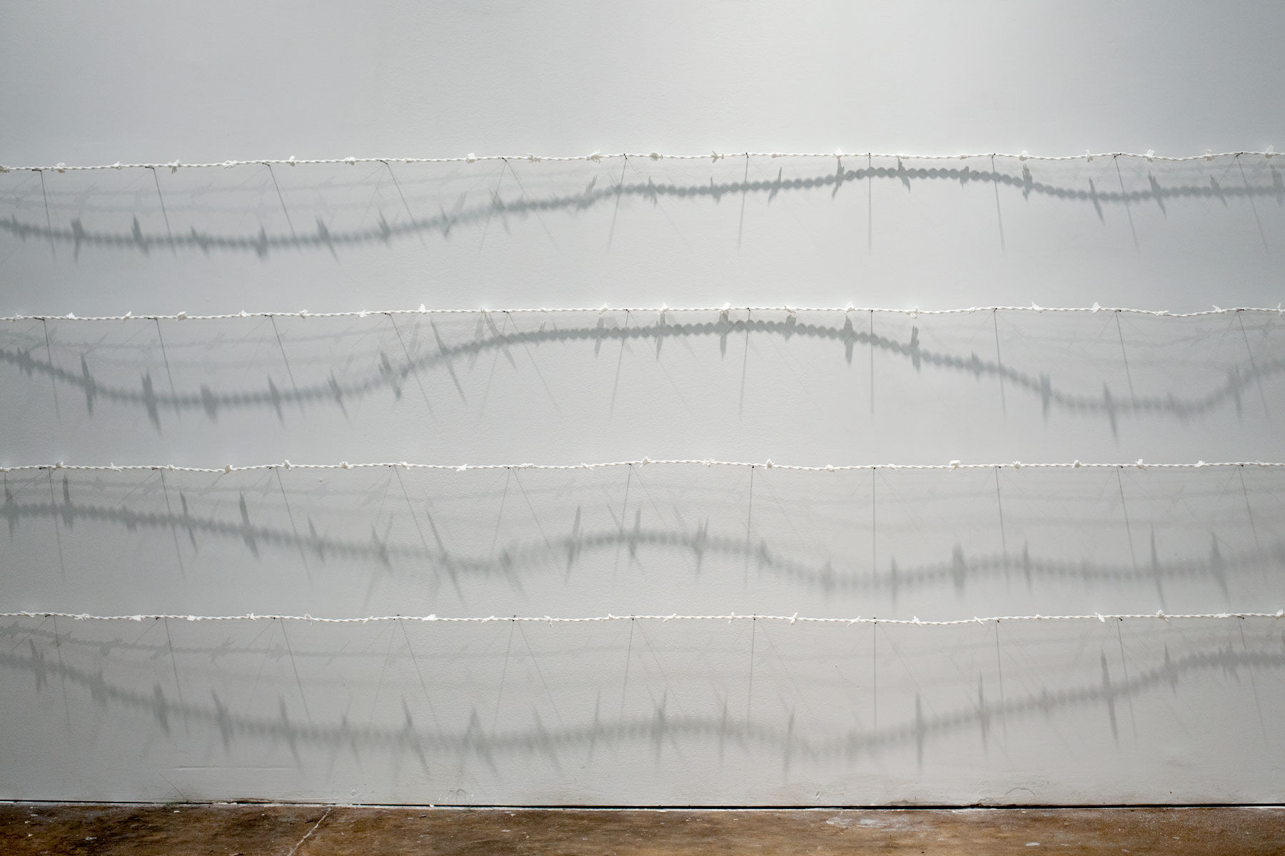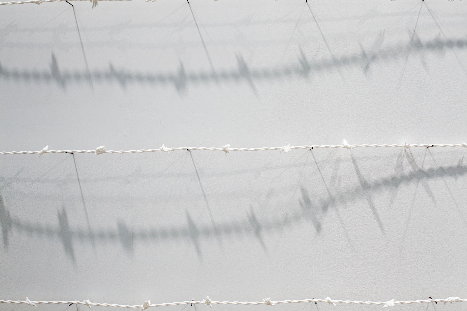 El primer alambre está hecho en nylon y de lejos recrea un cercado convencional, pero al acercarse está dividido en fragmentos únicos de 12 cm que encajan uno con otro, que pueden ser intercambiables, como un lego, sin alterar del todo el alambrado.