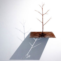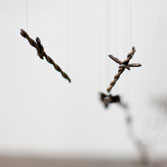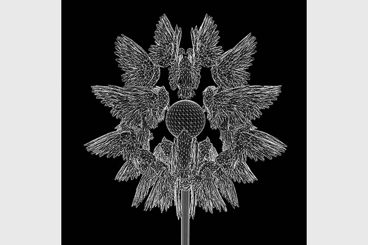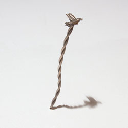 La segunda parte de la obra son fragmentos de acero con la trayectoria del vuelo de un pájaro, con dos finales diferentes.