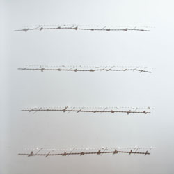 La primera 2 alambres de púas, uno enfrentado al otro, donde se cambiaron las púas por pájaros.