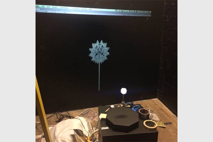 Al entrar se ven 4 videos con un diente de pájaros y en el centro una escultura con esta misma forma de diente de pájaros. Cada espectador puede soplar en este diente de león y dependiendo hacia donde se sople y la intensidad, los pájaros del video harán una trayectoria en tiempo real de la migración.