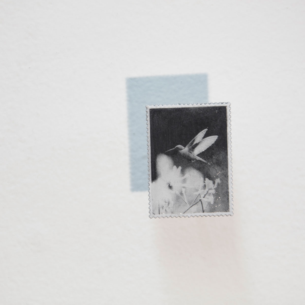 Por otra parte, asocié el mecanismo de la deriva que hago de manera personal a lo que hacen las estampillas, donde recorren el mundo sin camino fijo y exploran nuevos andares. Cada estampilla facilita el trayecto de emociones y noticias nuevas. Estas están en vía de desaparición, como también lo está cada vez más el acto de disfrutar elementos mínimos, como el hecho de derivar sin motivo real en el mundo.